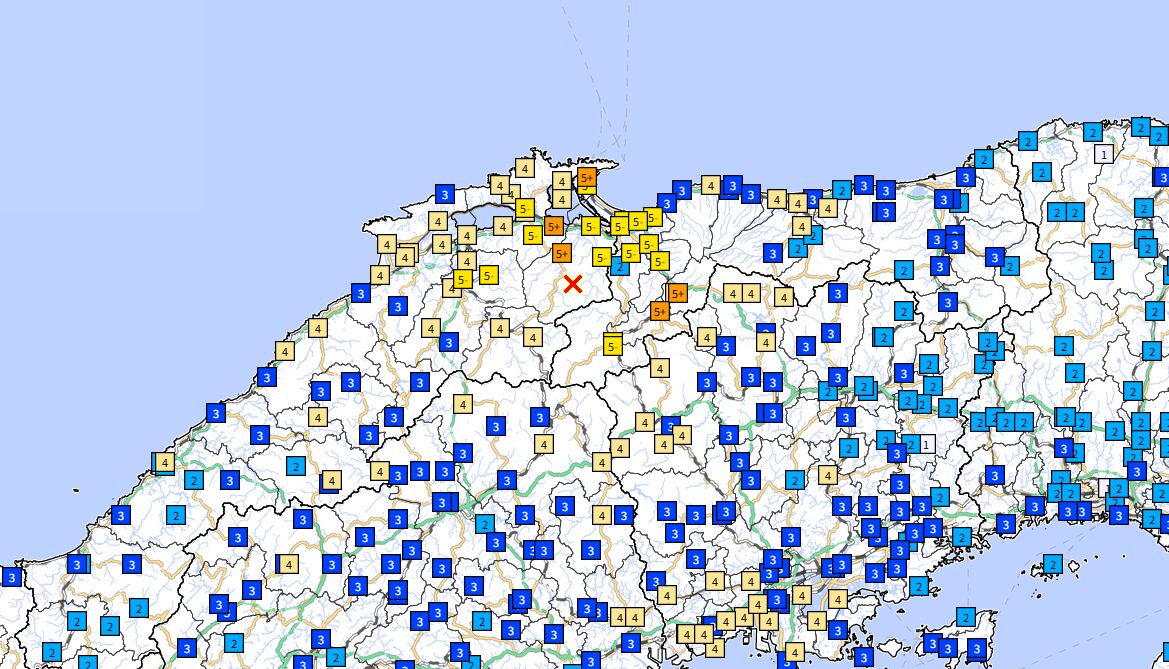• 震源地:島根県東部