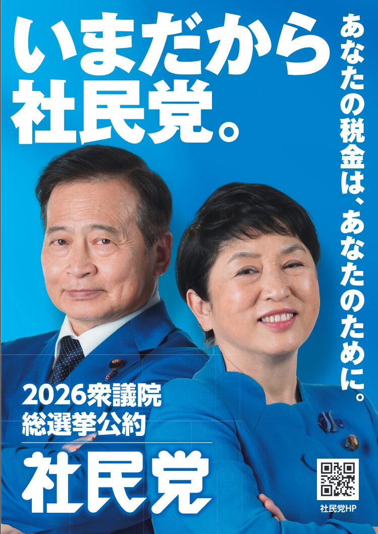 2026年2月8日に投開票が行われる第51回衆議院選挙に向けて、社民党が公約を発表しました。福島みずほ党首のもと、消費税ゼロ、軍拡反対、社会保障充実を三本柱に、「平和・人権・持続可能社会」の実現を掲げています。8つの政策分野にわたる具体的な公約を見ていきましょう。